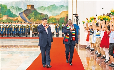 九月三日下午,国家主席习近平在北京人民大会堂同来华出席中非合作论坛北京峰会并进行国事访问的津巴布韦总统姆南加古瓦举行会谈。