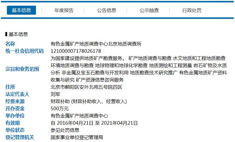 经查,有色金属矿产地质调查中心北京地质调查所存在不按规定申请变更登记的行为,依据《事业单位登记管理暂行条例实施细则》第七十条规定,决定对该单位作出书面警告并通报举办单位的行政处罚。