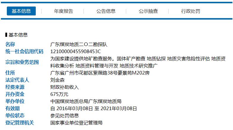 经查,广东煤炭地质二○二勘探队存在不按规定申请变更登记的行为,依据《事业单位登记管理暂行条例实施细则》第七十条规定,决定对该单位作出书面警告并通报举办单位的行政处罚。