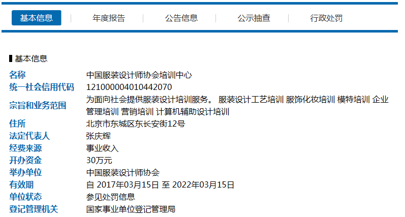 国家事业单位登记管理局对中国服装设计师协会培训中心作出行政处罚