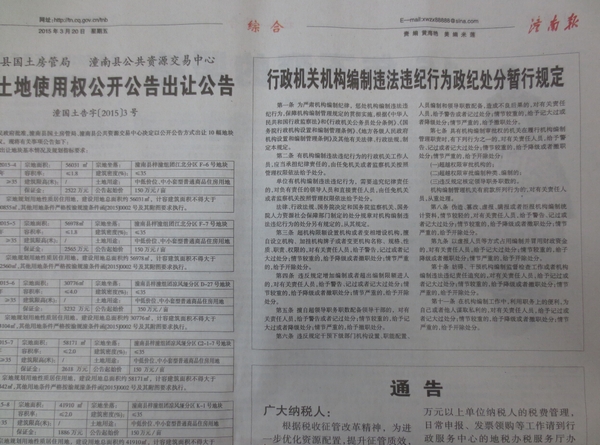 潼南报刊载政纪处分暂行规定