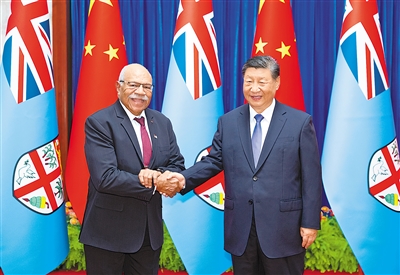 8月20日下午,国家主席习近平在北京人民大会堂会见来华正式访问的斐济总理兰布卡。