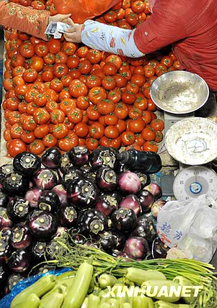 这是顾客在银川市一家市场购买蔬菜(2009年1月22日摄)。新华社记者 王鹏摄